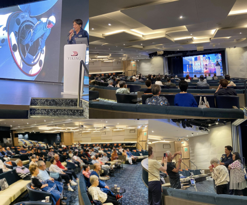 講演後、「本当に面白かったです!続きの講義も楽しみにしています!」「記念にぜひ写真を撮ってください!すごく嬉しいです!」「83歳の私でもとてもワクワクして興味を持ちました!ありがとう」「まさかジャパネットクルーズでこんなに素晴らしい講演に出会えるとは思ってもみませんでした!ジャパネットさすがです」など、たくさんの質問や感想が寄せられました。