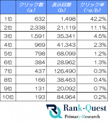 対象キーワードは、2025年5月中にランクエストサイトで検索結果1位から10位に掲載されたものに限定し、各順位ごとのクリック率を分析しました。