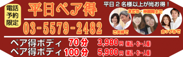 ペア得ボディ 70分 3,980円(税込み)