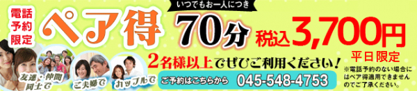 今回「もみの匠 横浜店」では ペア得のキャンペーンを新たに打ち出しました。