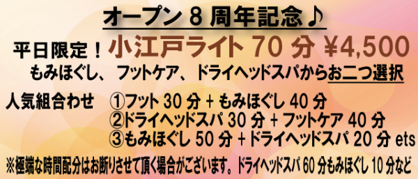 今回「もみの匠 川越店」では 8周年記念のキャンペーンを新たに打ち出しました。