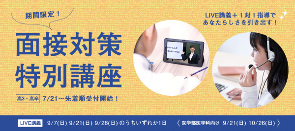 大学受験予備校「四谷学院」(運営:株式会社四谷学院、本社:東京都新宿区、代表取締役:植野 治彦)は、2025年9月より、大学の推薦入試(総合型選抜等)、および医学部をはじめとする二次試験において面接が課される受験生を対象とした「面接試験特別講座」を開講いたします。