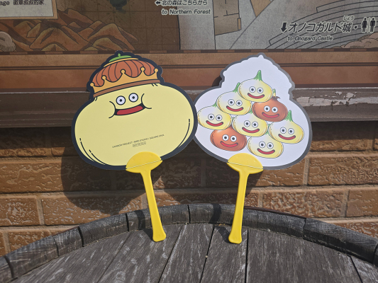 本キャンペーンでは、期間中にアトラクションへ来場されたお客様を対象に、通常は初期装備品のノベルティ「リストバンド」をお渡しするところを、猛暑が予想される夏シーズン限定で新ノベルティ「たまねぎキングうちわ」を配布いたします。まるで、ゲームに出てくる呪文“バギ”のように、鋭い風を巻き起こすオリジナルノベルティで、ニジゲンノモリ「ドラゴンクエスト アイランド」だけで体験できる全力夢中の冒険に出かけよう!