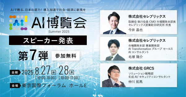 「AI博覧会 Summer 2025」第7弾スピーカー発表では、日本を代表する3名によるカンファレンスを実施します。ぜひご参加ください。
