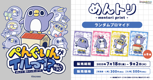 7月19日(土)より西武渋谷店A館365cafeにて開催予定の「めんトリ」コラボカフェの描き下ろしイラストを使用した全8種のラインナップとなっております。ぜひ「インクルーズプリント by eプリントサービス」をお楽しみください!