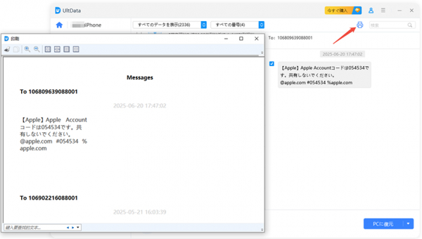 携帯電話内の重要な会話や取引記録を、証明書やメモとして印刷したい場合があります。UltData for iOSは、SMSとLINEなどのチャット履歴の印刷機能で、あなたのデジタルな記憶を物理的な形に残すお手伝いをします。