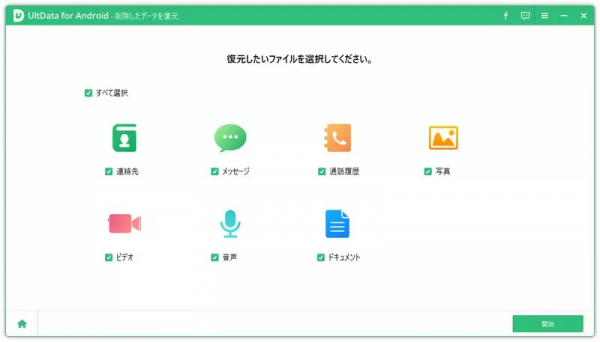 手順3.復元したい写真の種類を選択したら「開始」をクリックでスキャン開始です。スキャンしたデータがプレビュー表示されるので、復元したいデータを選択して「復元」をクリックします。