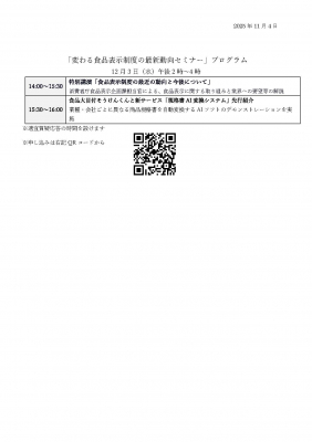「変わる食品表示制度の最新動向セミナー」プログラム
