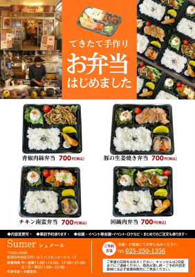 この度、新潟市万代シテイバスセンター1Fにて飲食店を運営する「シュメール」では、お客様からの「ランチ帯にお弁当があったら嬉しい」のお声にお応えし、できたて手作りのお弁当をはじめました。
