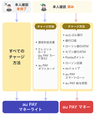 対象のチャージ方法でチャージいただくことで、au PAY マネーがご利用いただけます。