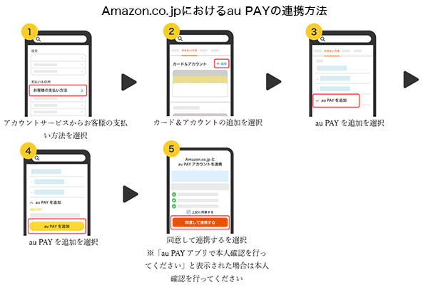 Amazon.co.jpの支払い方法に「au PAY(ネット支払い)」を追加するためには、Amazon.co.jpでの連携が必要です。