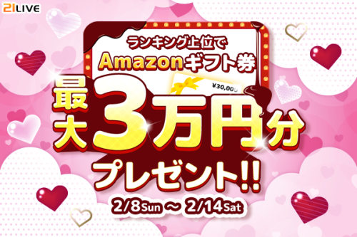 2月8日(日)より『ランキング上位でAmazonギフト券最大3万円分プレゼント!』を開催します。