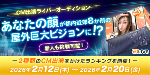 2月12日(木)より、屋外ビジョンCMへの出演権をかけたランキングイベント『CM出演ライバーオーディション』を開催します。