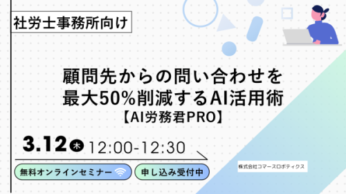 「顧問先からの質問対応に時間がかかっている」「AIって気になるけど、難しそうで手が出せない」そんな社労士の先生方に向けたウェビナーです。AIの知識はゼロでも大丈夫。実際の業務画面をお見せしながら、すぐに使えるイメージをつかんでいただける内容にしています。30分・途中入退室可能です。