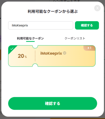 (2) 購入画面で割引コード「iMoKeeprix」を入力