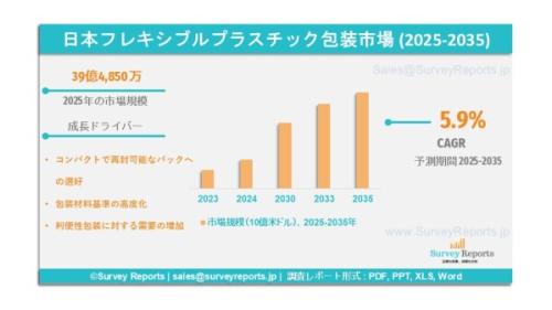 Surveyreportsの専門家は、日本のフレキシブルプラスチック包装市場に関する調査分析を実施し、2025年における同市場規模が39億4,850万米ドルであったことを明らかにした。さらに、2035年末までに売上高が56億9,330万米ドルに達すると予測されている。日本のフレキシブルプラスチック包装市場は、2025年から2035年の予測期間において、約