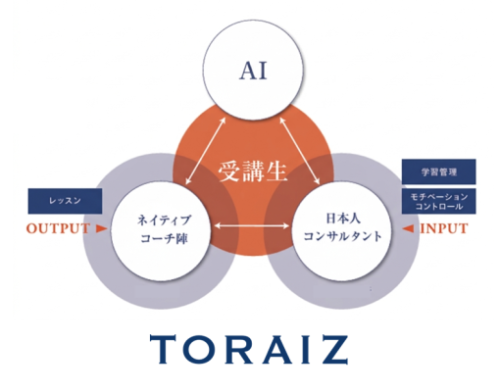 トライズは、日本人コンサルタント※1による「コーチング」、ネイティブコーチとの「英会話レッスンでの実践」、そしてAIによる「反復」。これら3軸を高度に融合させることで、さらなるオーダーメイドを追求した学習環境を構築しました。トライズ受講生には、特許技術を搭載したAI英語学習アプリ「TORAbit」を提供します※2。これにより、従来の「1日3時間・年間1,000時間」という圧倒的な学習量を誇るトライズのメソッドを堅持しながら、英語の発話機会を増加し瞬発力向上を図ります。多忙を極める現代のライフスタイルに即した「人とAIの共創」により、一人ひとりの課題に即座に応えるオーダーメイドされた学習体験を実現してまいります。
