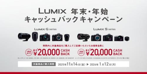 パナソニックは2025年11月14日(金)より、ミラーレス一眼カメラ「LUMIX Sシリーズ」および「LUMIX Gシリーズ」の対象製品を購入した方を対象に、「LUMIX 年末・年始キャッシュバックキャンペーン」を実施すると発表しました。
