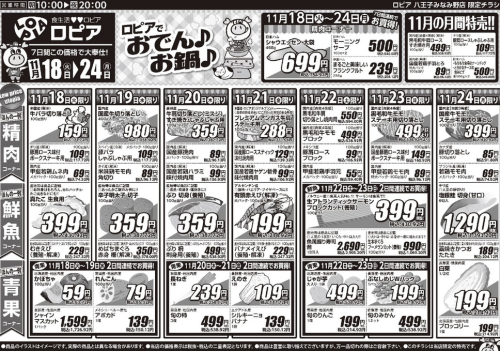 【ロピア 八王子みなみ野店のチラシ】11月24日(月)までの日替わり特売情報