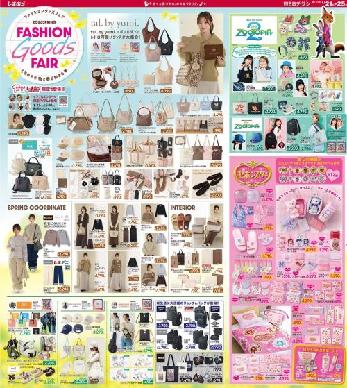 今週のしまむらチラシは、春のおでかけが待ち遠しくなるアイテムが盛りだくさん。人気インフルエンサーコラボの『tal. by yumi』シリーズや、映画公開で注目の『ズートピア2』グッズ、懐かしさと可愛さを兼ね備えた『セボンスター』の実用雑貨など、見ているだけでワクワクするラインナップですね。