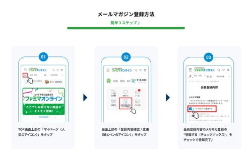 ファミリーマートは、デジタルコマース事業「ファミマオンライン」で、メルマガ登録者を対象にしたクーポン配布と、ファミペイ払いでのポイント還元強化を2026年2月3日(火)から実施します。