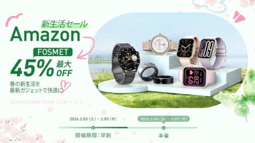 Amazon新生活セールにスマートウォッチを手掛けるFOSMETも参加します。