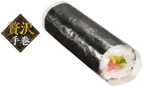 厳選まぐろ赤身ととろたく手巻(税込360円~、有明海一番摘み海苔使用)