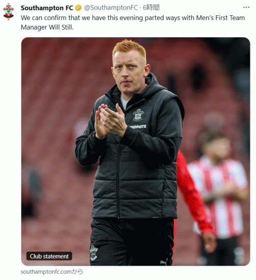 イングランド2部リーグのサウサンプトンは2日、スティル監督の解任を発表した。MF松木玖生が所属するチームは13試合を終え、24チーム中21位と低迷していた。