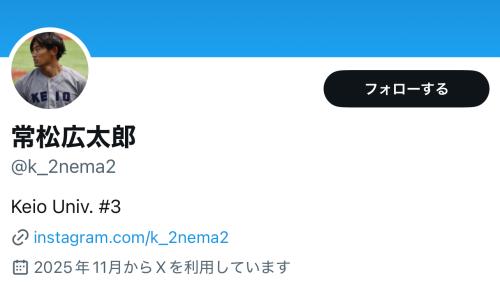 米大リーグのカブスからマイナー契約のオファーが届いた東京6大学野球リーグに所属する慶大・常松広太郎外野手(4年=慶応湘南藤沢)が、4日までに自身のX(旧ツイッター)アカウントを開設した。