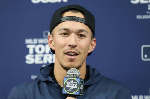 バスの上での家族ショットや、エドマンに抱えられる長男イーライくんの姿などを次々とアップ。タイラー・グラスノー投手(32)の婚約者メーガンさん、ウィル・スミス捕手(30)の妻カーラさんとのスリーショットも投稿した。
