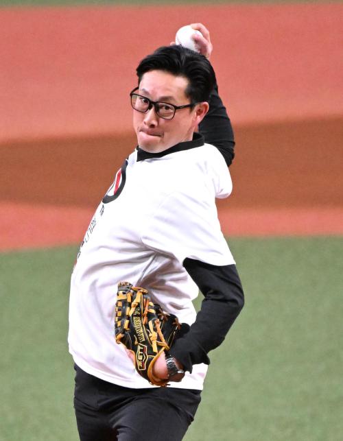 オリックス岸田護監督(44)が始球式を務めた。現役時代をほうふつとさせるしなやかな腕の振りから外角高めに力強く投じた。「ちゃんとアップしてきたので汗だくです。ボール球でした、残念。練習しときます」と唇をかんだ。19年に現役引退後、6年ぶりとなる京セラドーム大阪での登板。「緊張しましたね。ブルペンも緊張しましたけどね。マウンド立つと中継ぎの時を思い出すような」と振り返った。