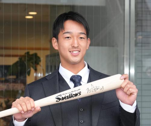 ○…即戦力の期待を集める松下は2月に沖縄・浦添で行われる1軍キャンプに加わることが内定している。池山監督は「目玉なのでね。はりきりすぎてけががないように」と話しており、体調に問題ない限り、帯同する。8日にはほかの新人選手とともに、埼玉・戸田市の戸田寮に入寮。昨年新人王の荘司が使った部屋が与えられ、さっそく、メジャーでも活躍した青木宣親GMから贈られたバットを部屋に飾った。「1年目の目標は新人王です。青木さんを超えられるように頑張りたい。まず現役生活21年に追いつけるように」と、活躍を誓った。
