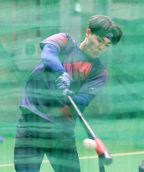 この日も打撃マシンを打つ前に、約1・5キロのマスコットバットでティー打撃。「このオフから取り入れてます。重いバットを振っときゃ打球スピードは上がるので。シンプルな練習です」。通常のバットは約900グラムを使用。その1・6倍の重さを振り続ければ自然とスイング速度も打球速度も上がる。単純明快な理論を追求してきた。