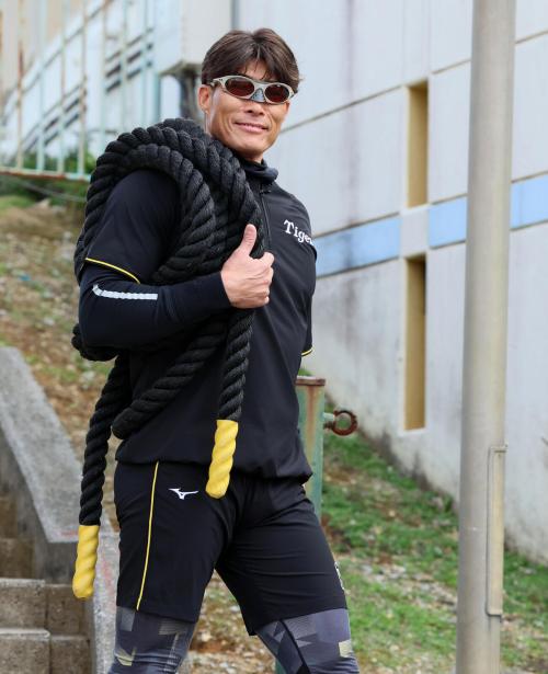 全身黒の球団ウエアに身を包み、右肩にはぐるぐると巻かれた黒い極太ロープをかついで登場。到着を待っていたファンの「糸井さーん!」の声に、ゆっくりと手を挙げて応えた。報道陣の「おはようございます」には「グッドモーニング!」とさわやかに返答した。