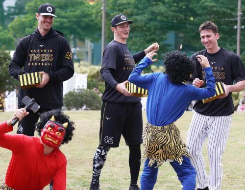 阪神の沖縄・宜野座キャンプ第1クール3日目の3日、新外国人の3人が豆まき体験に参加した。