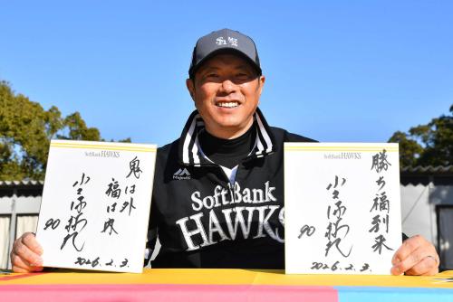 ソフトバンク小久保裕紀監督(54)が3日、宮崎市の生目の杜運動公園での春季キャンプで「節分の日限定」のサイン会を行った。