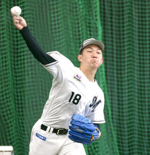 朗希? 今井? 注目ルーキーを表現するのに大物投手の名前が次々と挙がった。石垣元本人も心待ちにしていた初ブルペン。1球1球、丁寧に、ノーワインドアップで直球のみ立ち投げで15球。「楽しく投げ終われたのでよかったです」とラスト1球を投げ終えると、白い歯を見せ安堵(あんど)の表情を浮かべた。