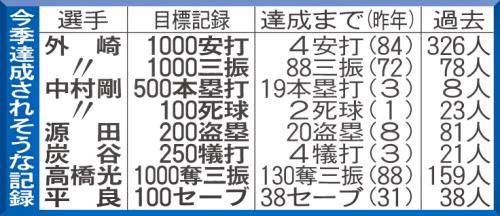 外崎は青森県出身だが、同県出身選手の通算安打数上位を見ると、(1)外崎996本(2)細川(ロッテ)680本(3)長内(横浜)632本。東北6県で唯一1000安打以上の選手がいない青森県で、初の達成者となりそうだ。