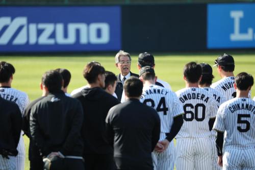 「昨シーズンの優勝はもうすでに過去のことなんで、今シーズンは前を向いて、球団創設100周年に向けて歴史を刻み続ける、新たなチームに進化してほしいと。そのためには、ベテラン、中堅、若手を問わず、全員がキャンプやシーズンを通じて、常に競い合ってほしい。その切磋琢磨(せっさたくま)によって、チームの力をさらに強めてほしい、という話をしました」
