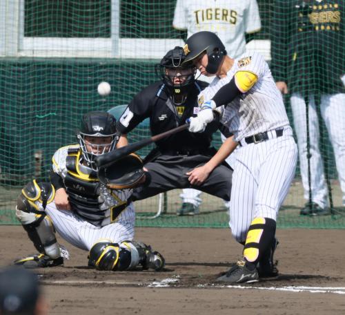 糸井氏によると打球速度は170キロを計測していた。練習では出にくいとされる数値で、1軍上位レベルをクリア。「ルーキーから見ていても打球が変わっている。今、すごく伸びていると自分でも分かっていると思う」と惜しみなく期待を口にした。