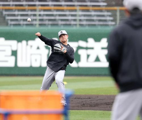 雨の中でも守備に向き合う。巨人石塚裕惺内野手(19)が5日、宮崎で行われている春季キャンプの早出練習に参加。雨が降りしきる中、選手では唯一サンマリンスタジアムのグラウンドに残り、ノックを受けた。