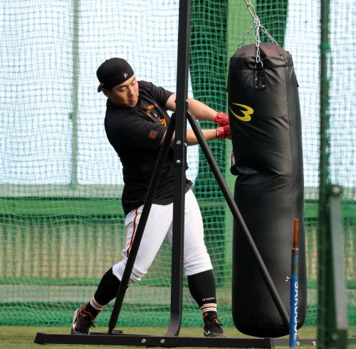 【巨人】岸田行倫と中山礼都が早出練習に参加 打撃マシン相手に打ち込みを行う
