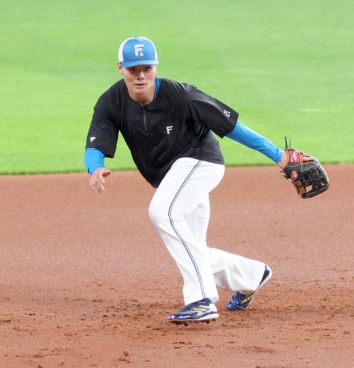 右肘を痛めている日本ハム清宮幸太郎内野手(26)がエスコンフィールドでノックを受けた。