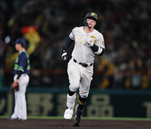 甲子園開幕戦で、阪神佐藤輝明内野手(27)が待望の26年1号でダメ押しした。7-3で迎えた8回2死一塁。ヤクルト大西の初球、真ん中低め141キロシュートを捉え、バックスクリーン左に運んだ。昨季の打撃2冠に今季10試合、44打席目で1発が飛び出した。