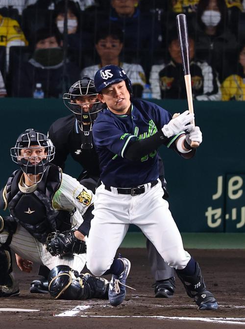 初回はあっという間に先制。まずは1番長岡秀樹内野手(24)がカウント2-1から左翼方向へ安打性の当たりを放った。相手左翼手がチャージをかけたが左足をとられたか倒れ込み、打球は後方に転がり三塁打。1死三塁から古賀優大捕手(27)が初球を左犠飛とした。試合開始から得点まで6球で約3分だった。
