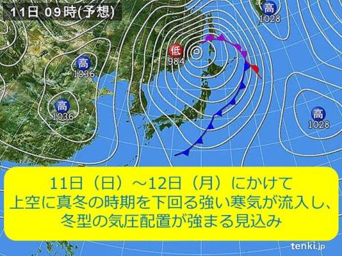 ●明日10日(土)は低気圧が通過 11日(日)~12日(月)は冬型の気圧配置が強まり、強い寒気が流入