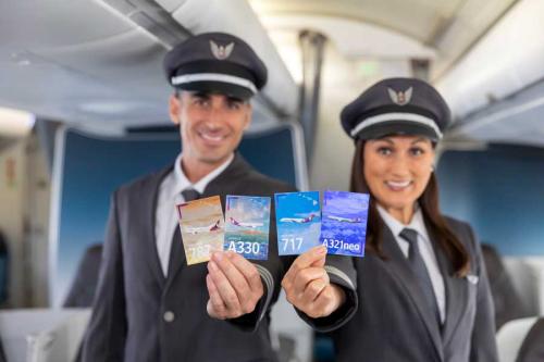 ボーイング787型機とエアバスA330型機、ボーイング717型機、エアバスA321neoの4種類で、このうち1枚を機内でプレゼントする。各機種の豆知識のほか、パイロットにサインをもらえるサイン欄も設けている。