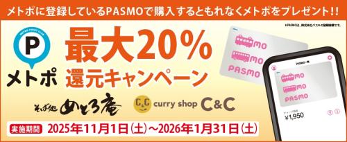 東京メトロは、メトポ最大20%還元キャンペーンを11月1日から2026年1月31日まで実施している。