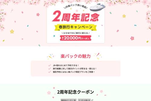 楽天グループは、旅行予約サイト「楽天トラベル」で展開している「JR楽パック赤い風船」の2周年を記念し、「春旅行キャンペーン」を1月13日午前10時から2月16日午前9時59分まで開催する。